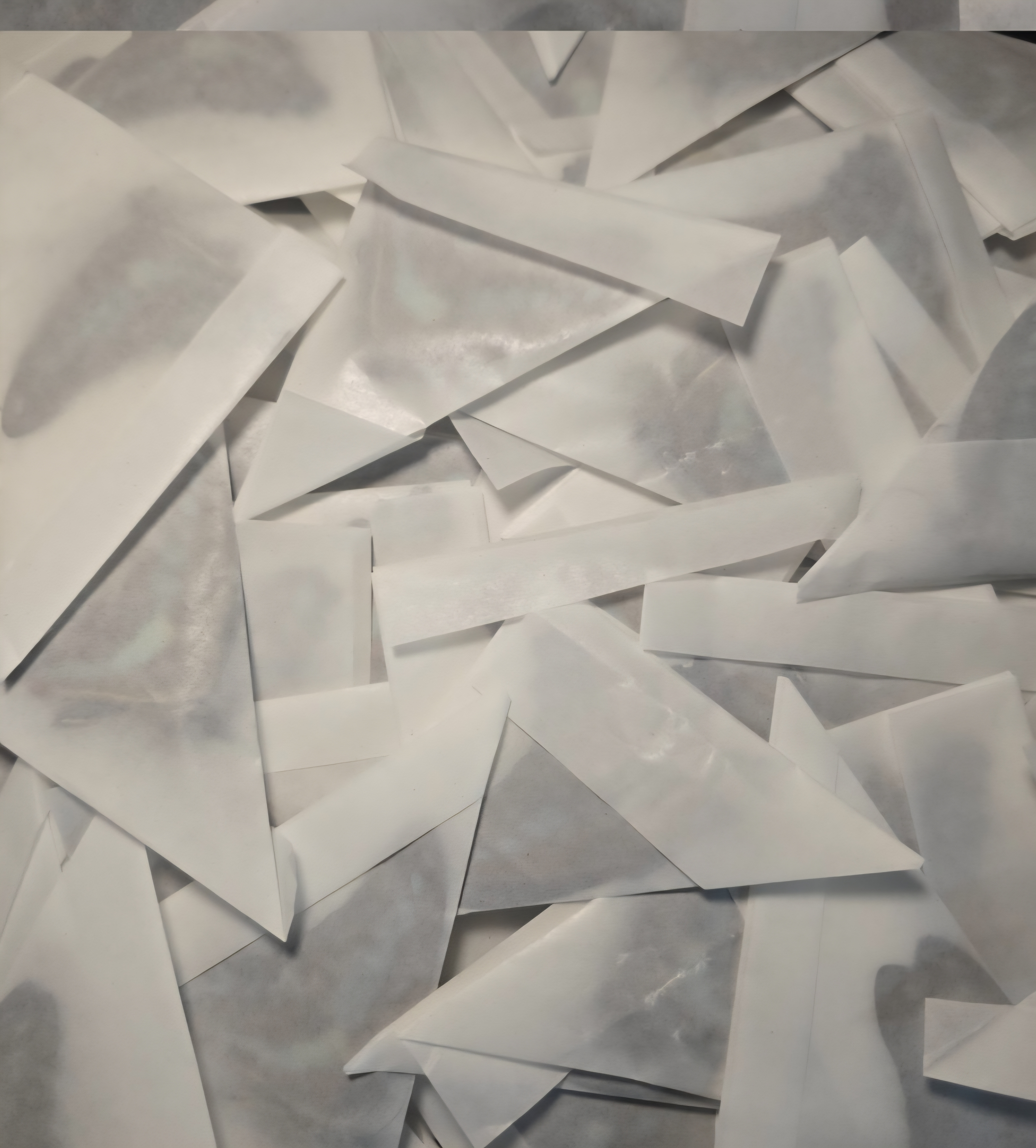 The butterfly is sent wrapped in parchment paper with its wings folded.